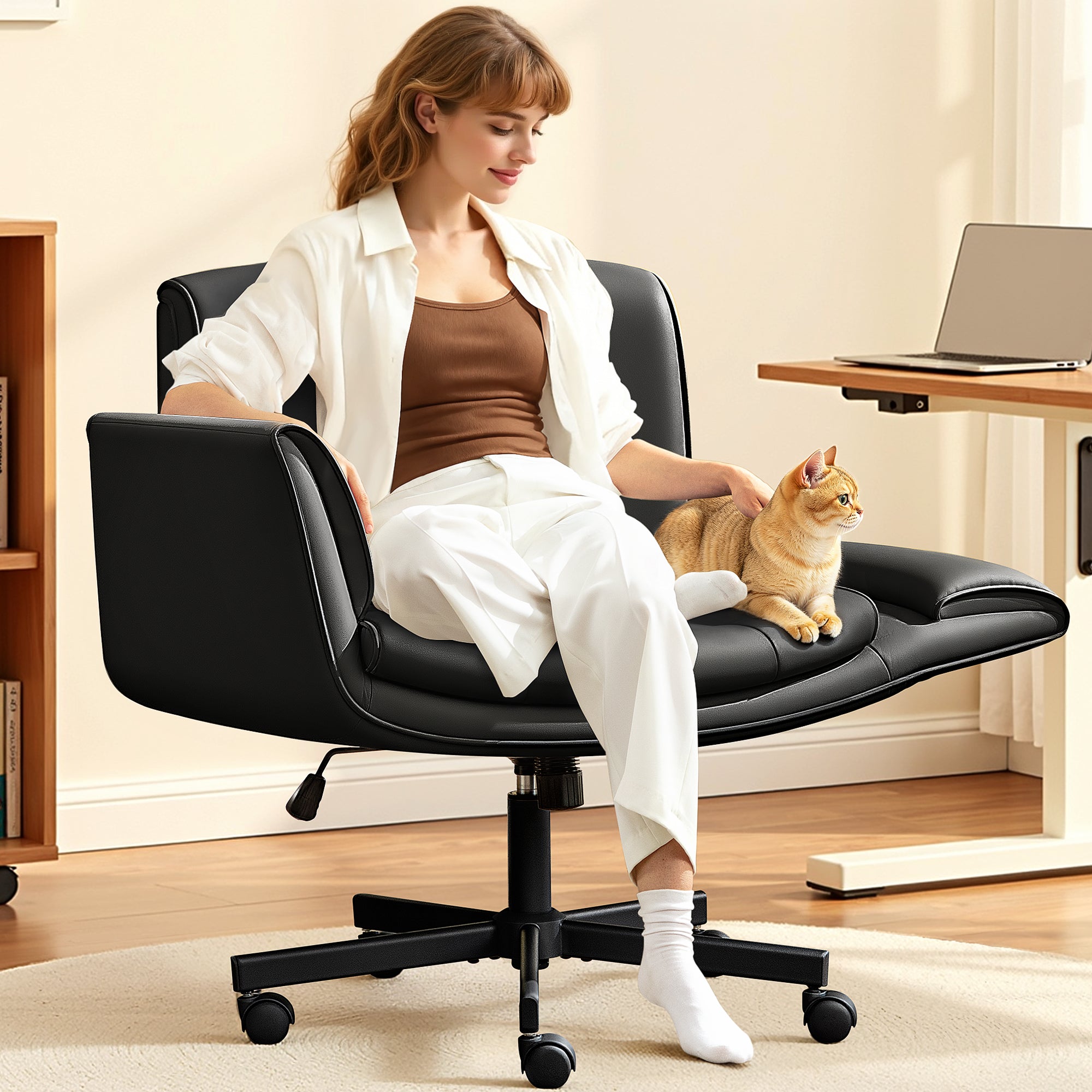 COOLHUT Criss Cross Office Chair with Armrests and Wheels, PU Leather Vanity Chair, Comfy Adjustable Swivel Computer Office Desk Chairs for Home Office, Make Up, Bedroom