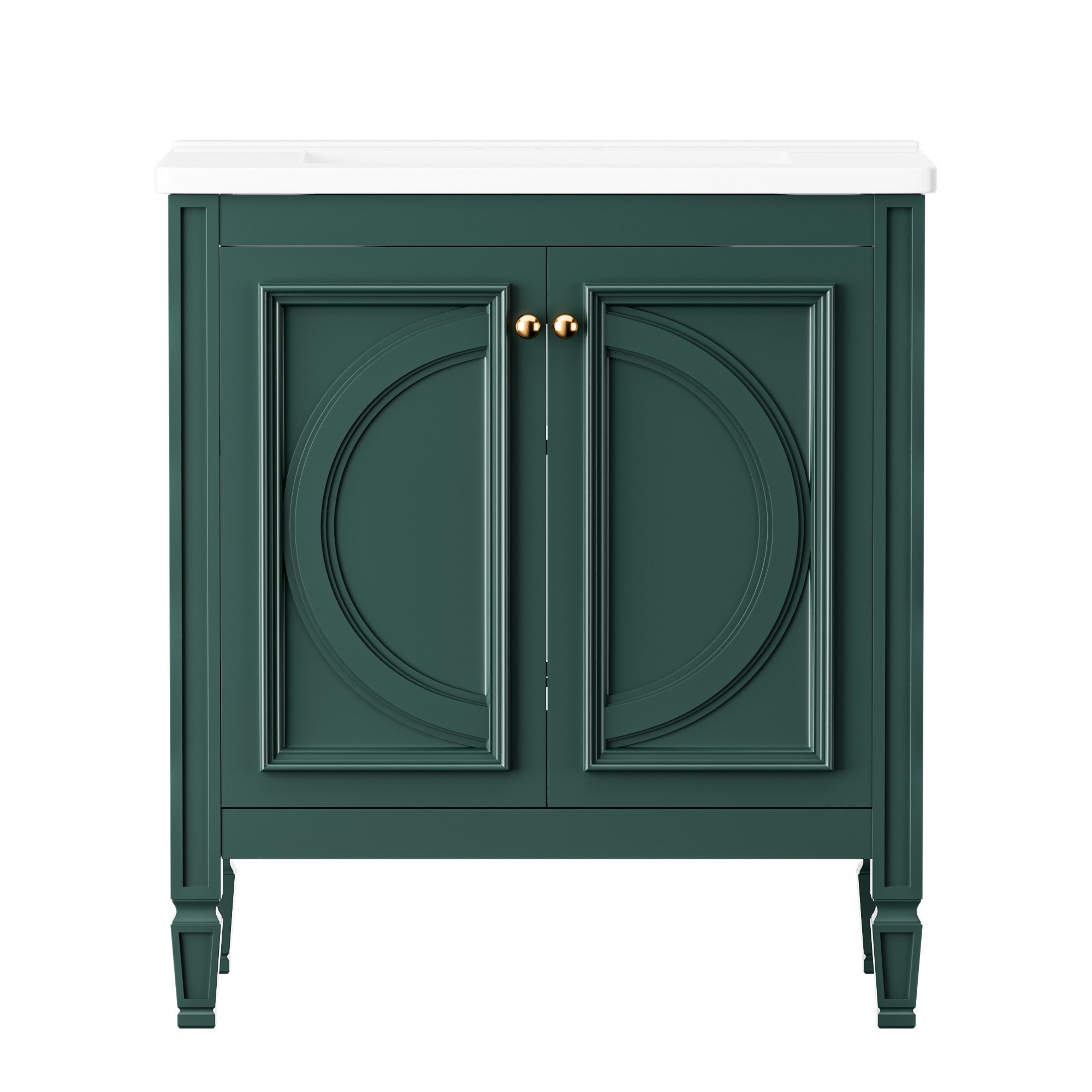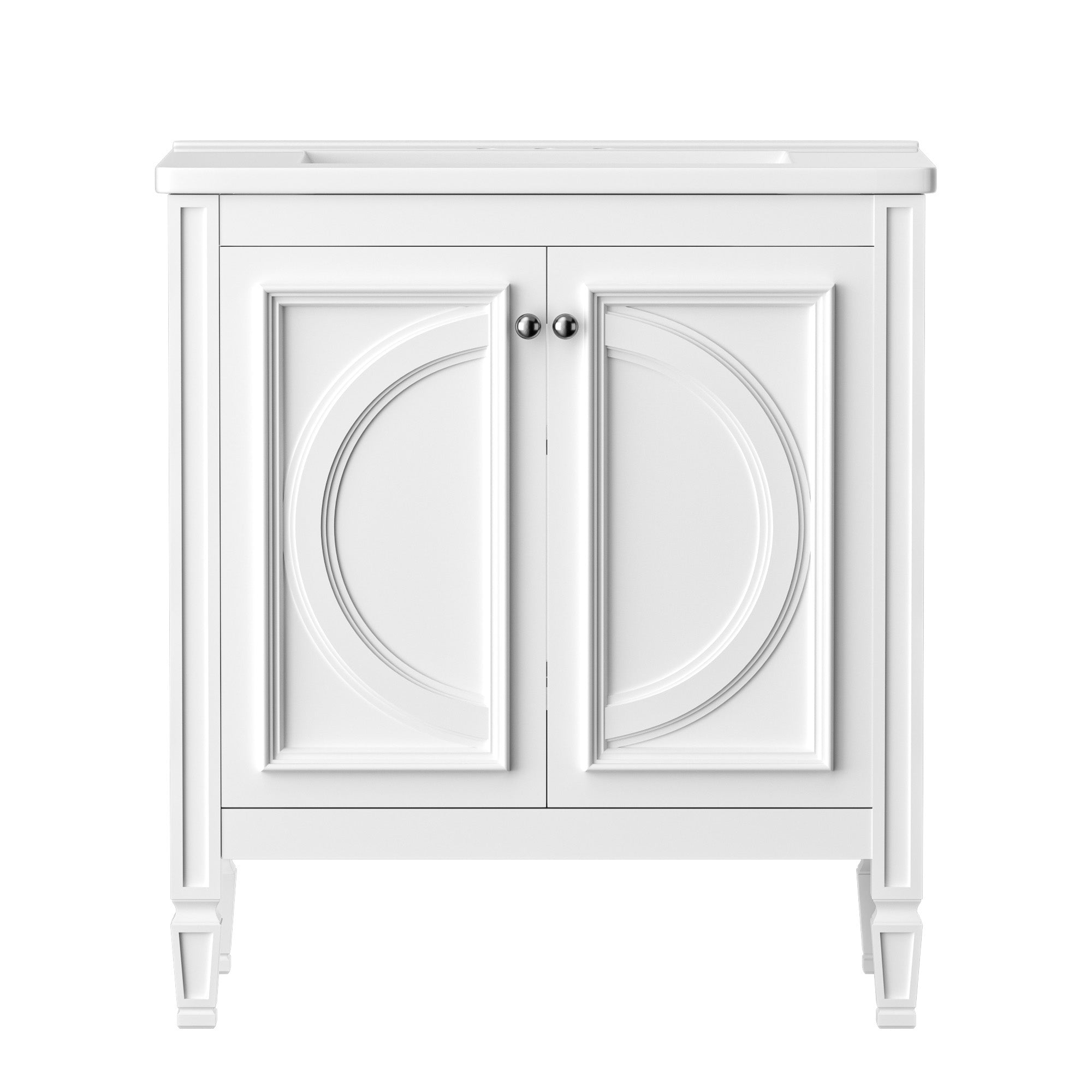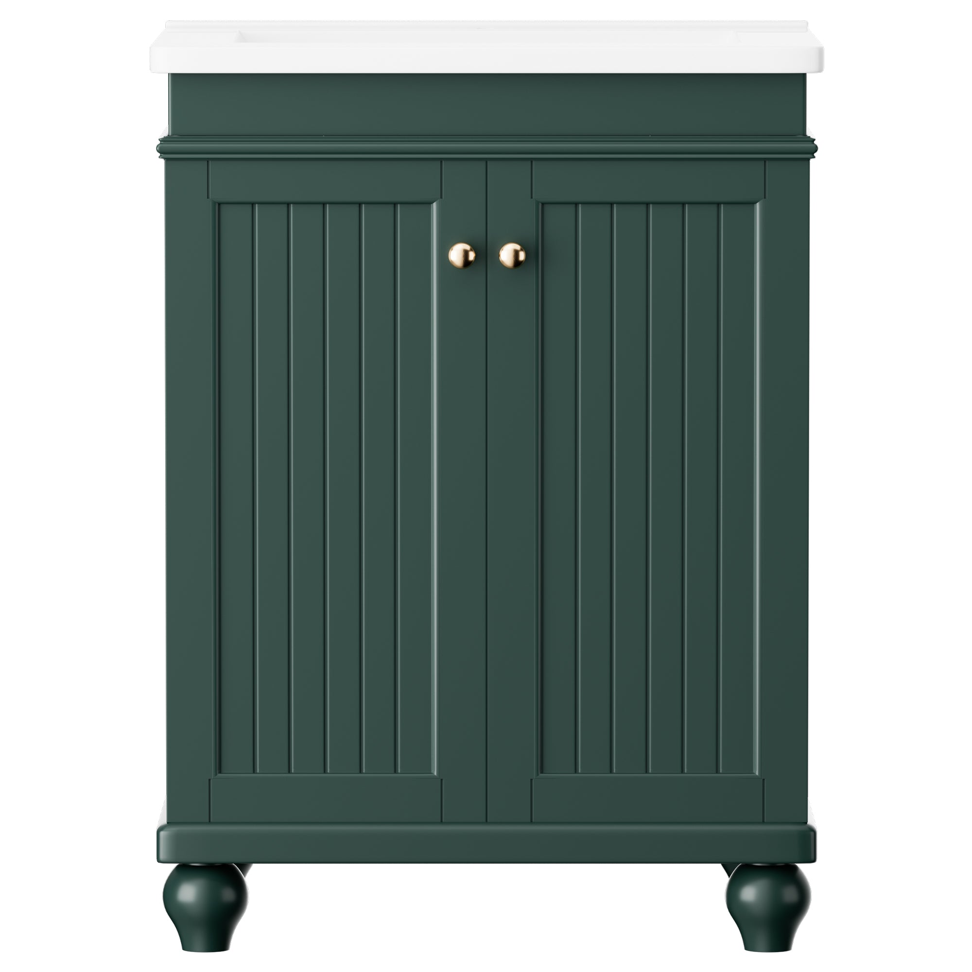 COOLHUT 24" Bathroom Vanity with Ceramic Basin and 2 Doors, Freestanding Bathroom Vanity and Sink Set