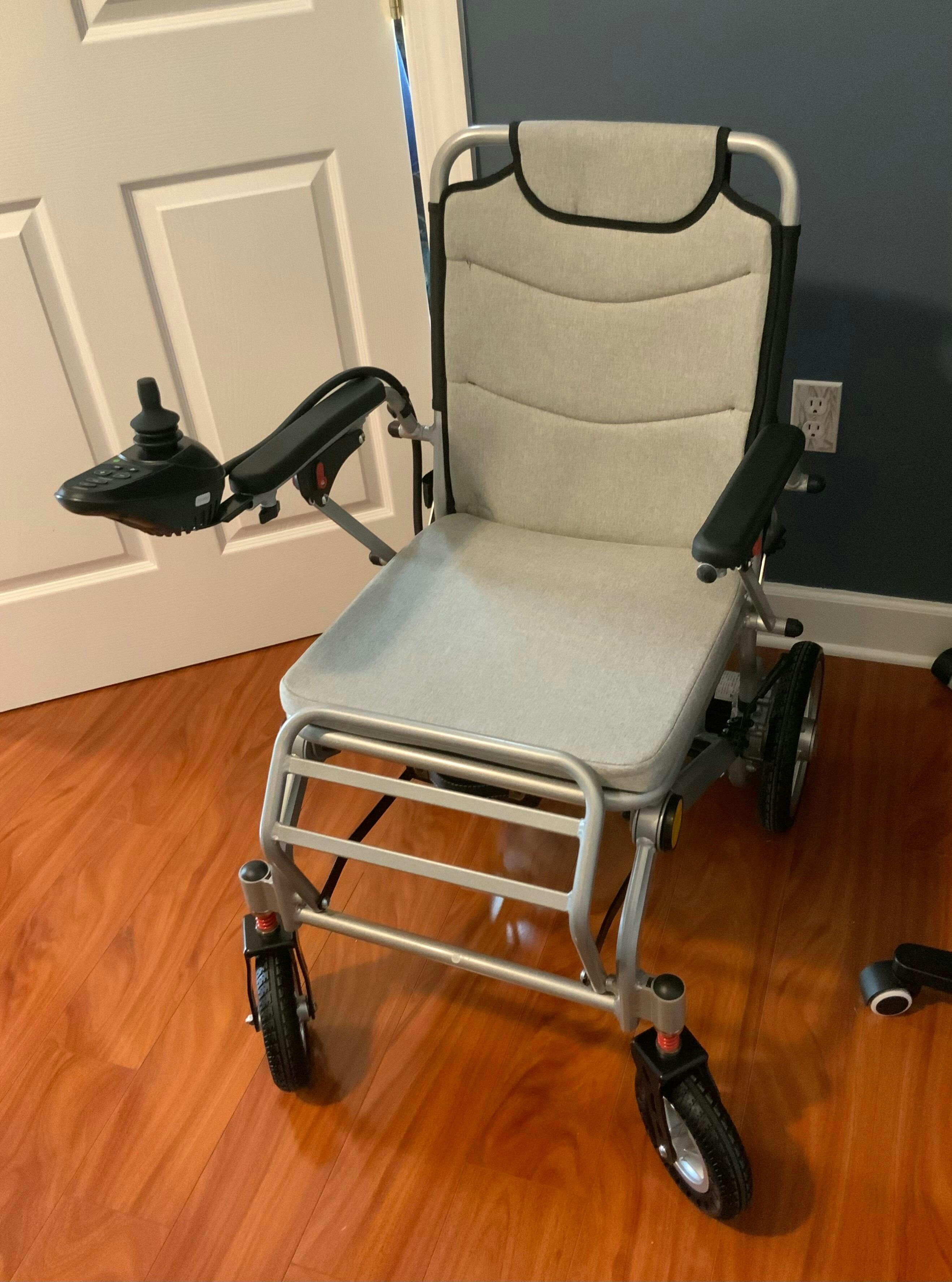 The power wheelchair has been a lifesaver for my daughter and myself. We travel frequently for her medical treatment and this chair has been very easy to use and it folds so easily. My daughter will use the wheelchair until she gets to the door of the airplane and then the employees take it from there to load it under the plane. They have also commented how easily it folds and how lightweight it is. So glad we found this wheelchair!!! We are extemely pleased.