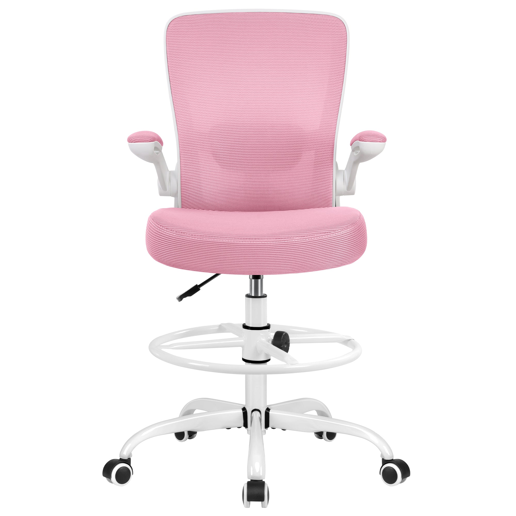 COOLHUT Drafting Chair Tall Office Chair with Flip-up Armrests Executive Ergonomic Computer Standing Desk Chair with Lumbar Support and Adjustable Footrest Ring