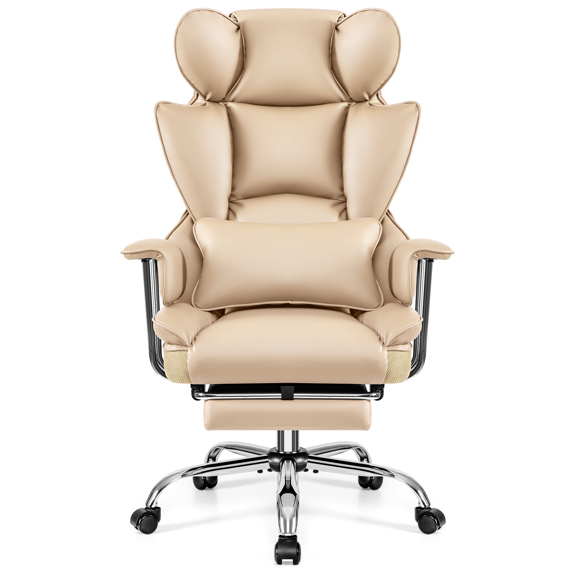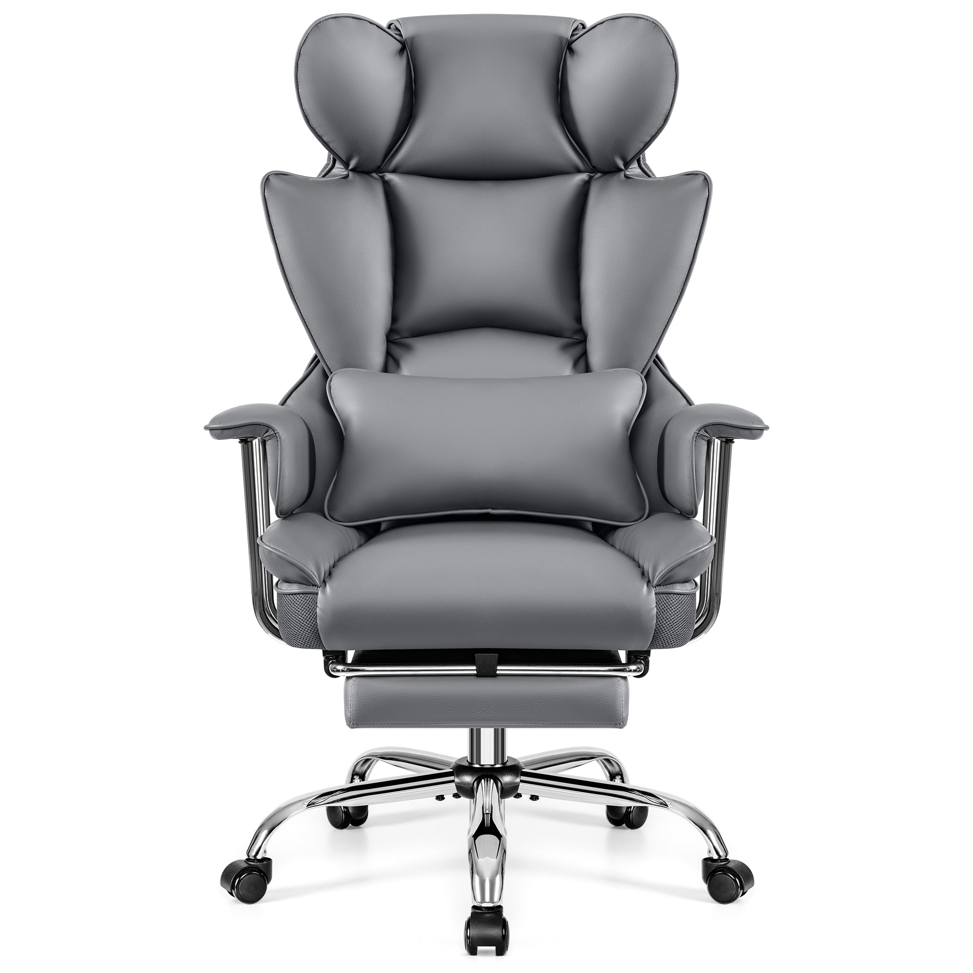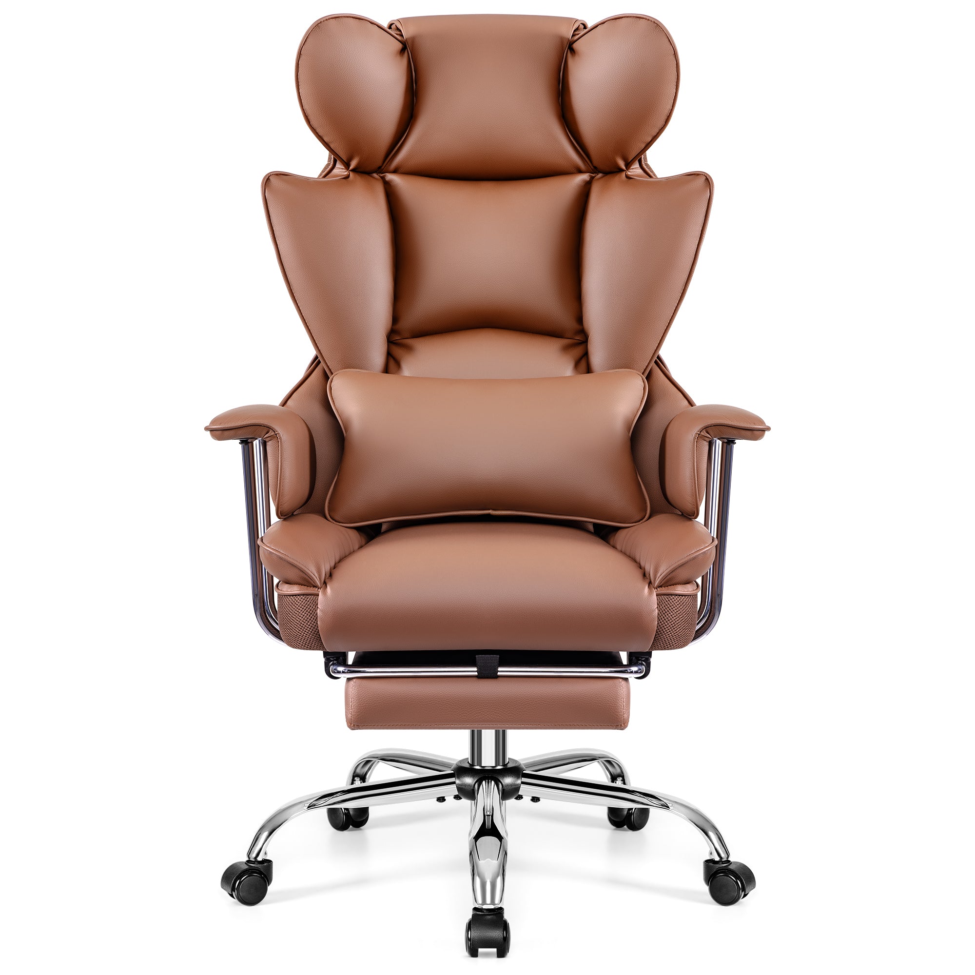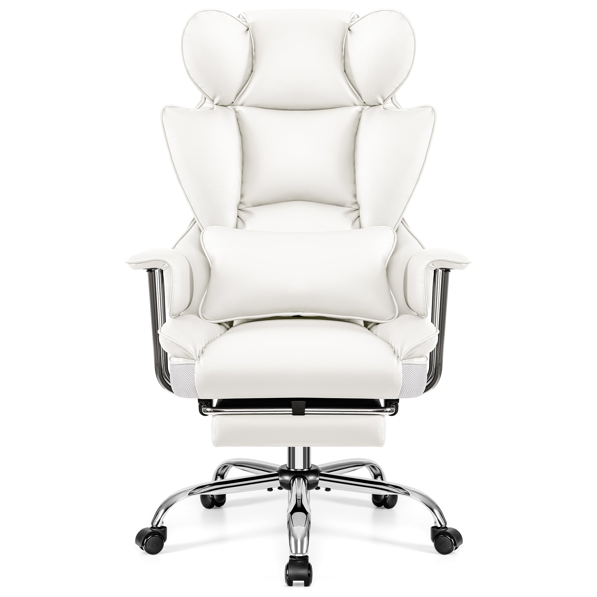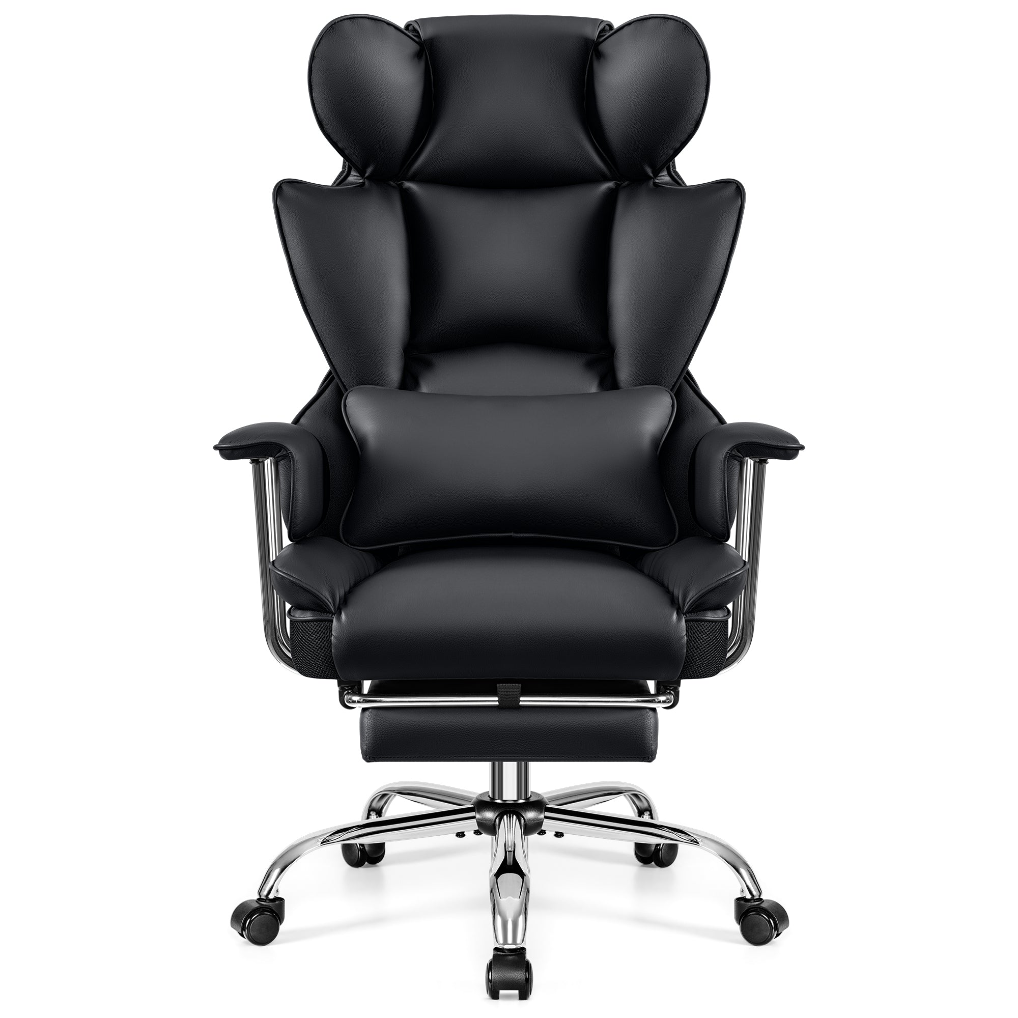 This executive office chair swivels 360° to give you freedom of movement. It features a height-adjustable mechanism, backrest angle, and tilt/swivel system that allows you to swing the chair back and forth at any angle up to 135°. The swivel chair with leg rest features a tilt tension knob that allows you to customize the tension to your personal preference. Experience comfort and flexibility with this reclining office chair, perfect for your home desk chair.
