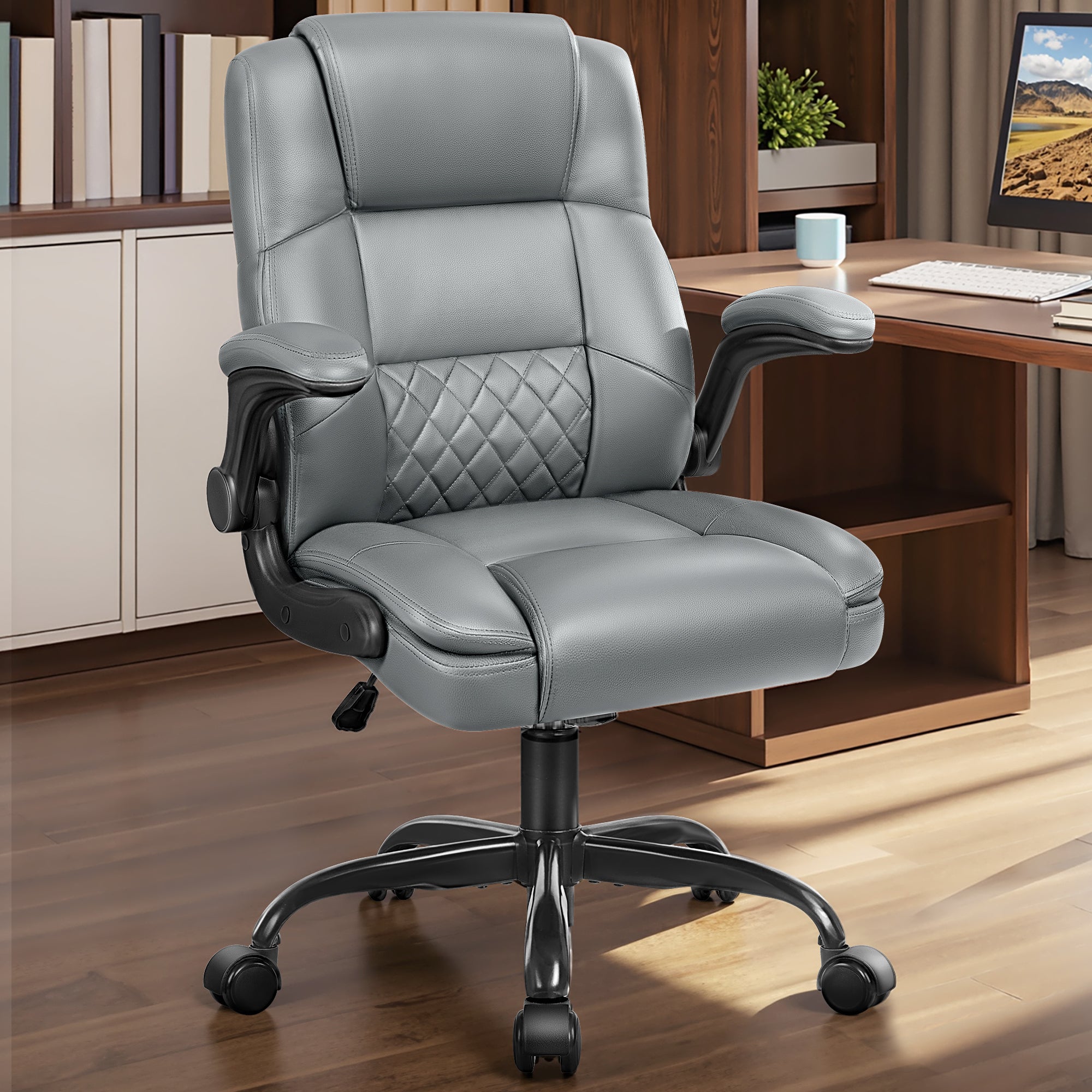 COOLHUT Office Chair, Executive Leather Chair Home Office Desk Chairs, Computer Chair with Adjustable Flip-up Padded Arms, Lumbar Support Swivel Desk Chair with Adjustable Hight and Tilt