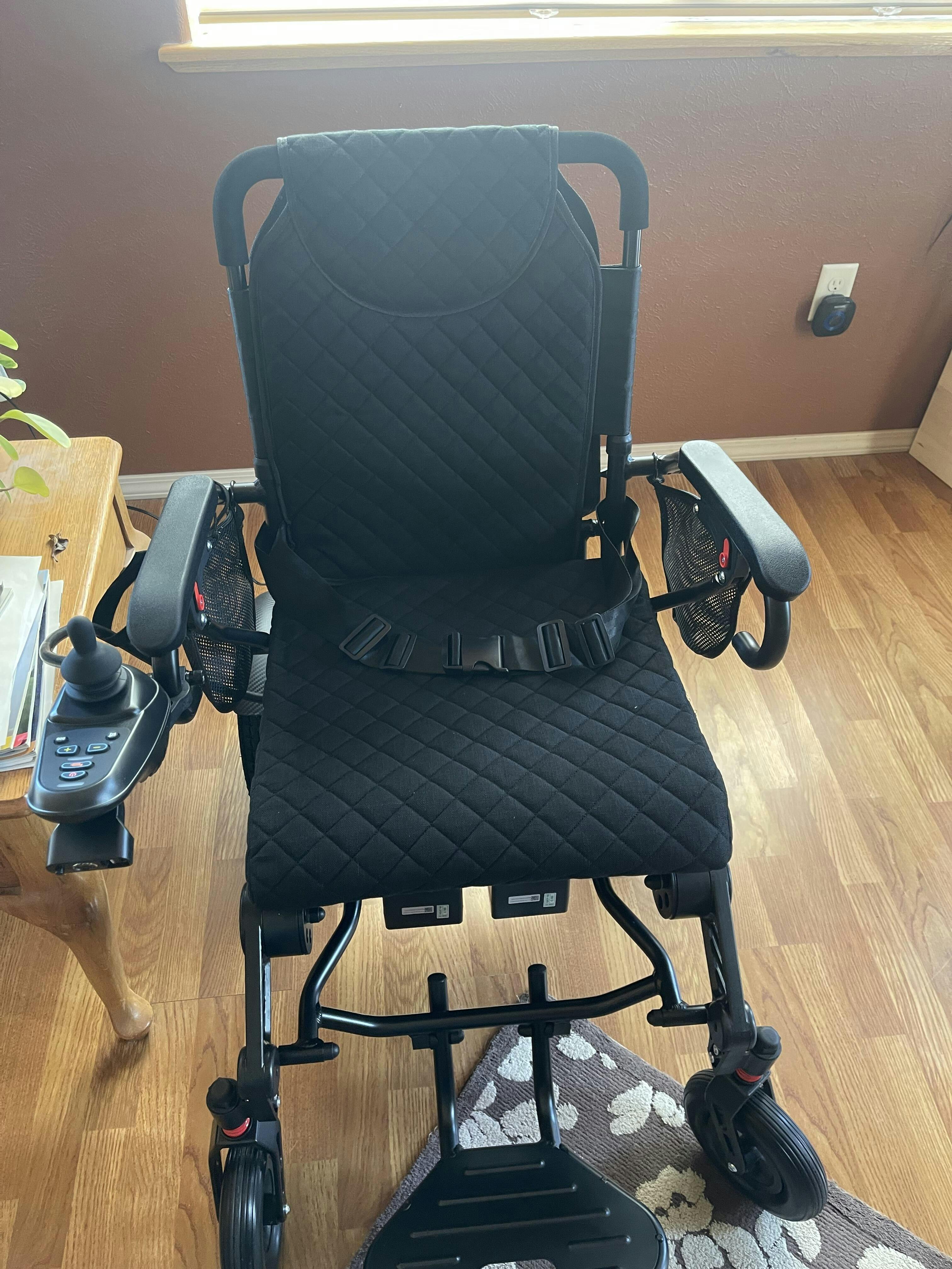 • Folding Power Wheelchair has a 20″ Seat Width